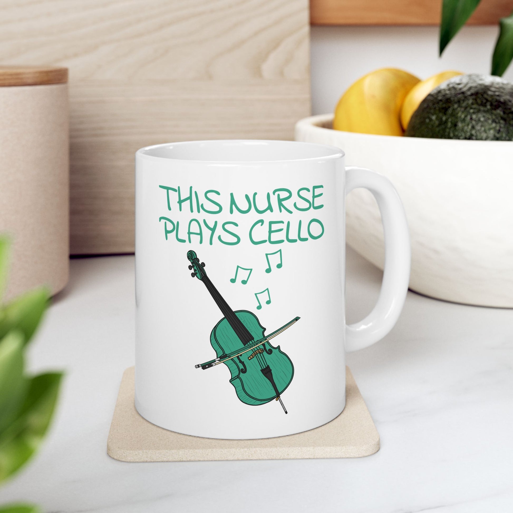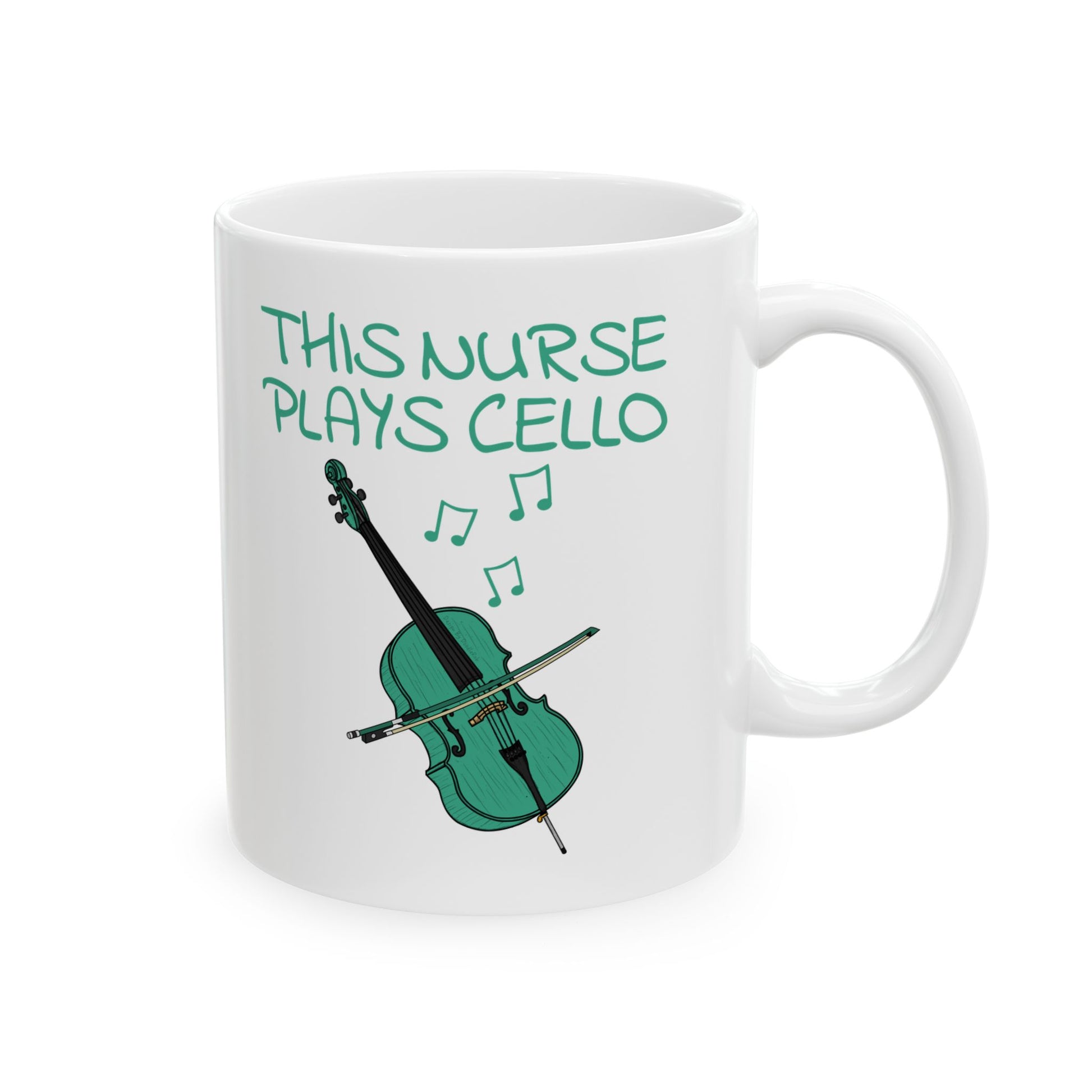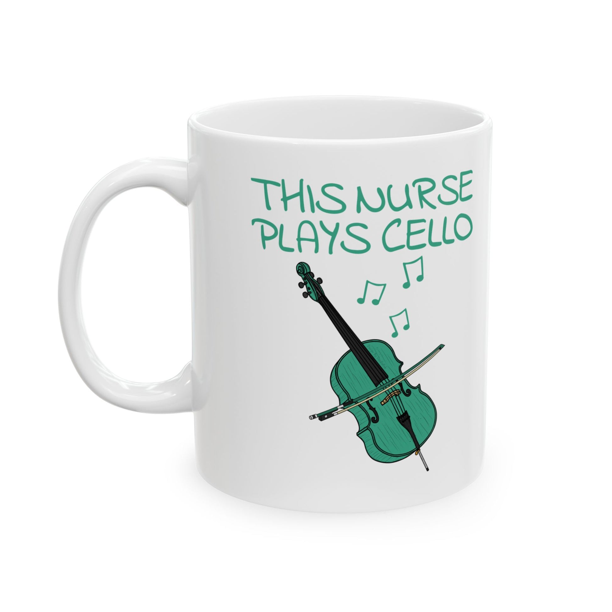 This nurse cello mug features my doodle of a cello with the text, "This Nurse Plays Cello"! The ideal gift for a nurse who plays cello!