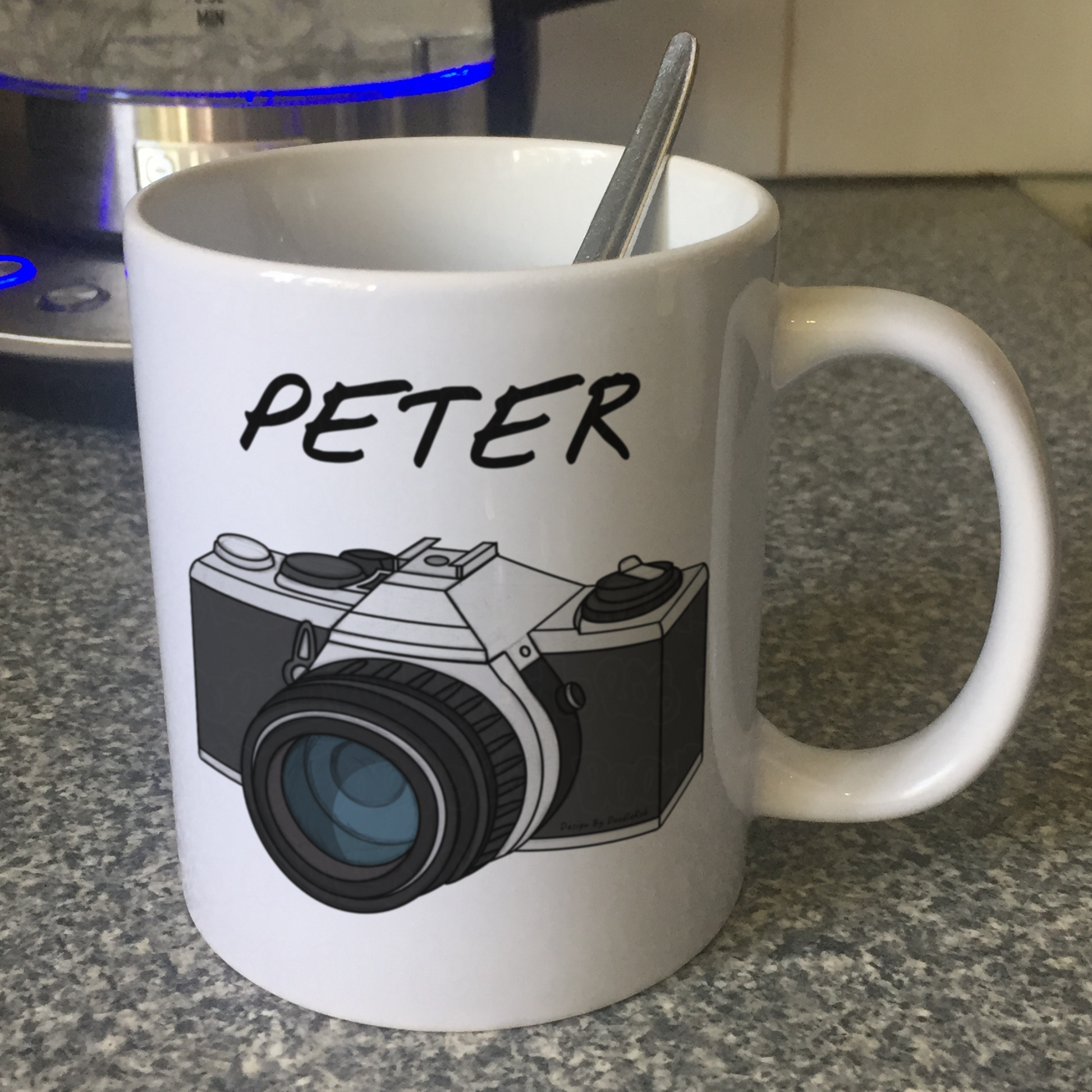This photographer personalised mug features my doodle of a vintage camera, with custom text! Ideal for photographers and photography enthusiasts, this mug is the perfect gift for birthdays, retirement or any other occasion!